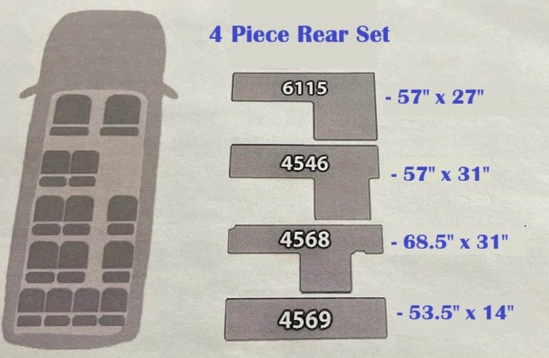4 pc REAR set includes: 2nd row, 3rd row, 4th row, and 5th row, plus free shipping to the lower 48.